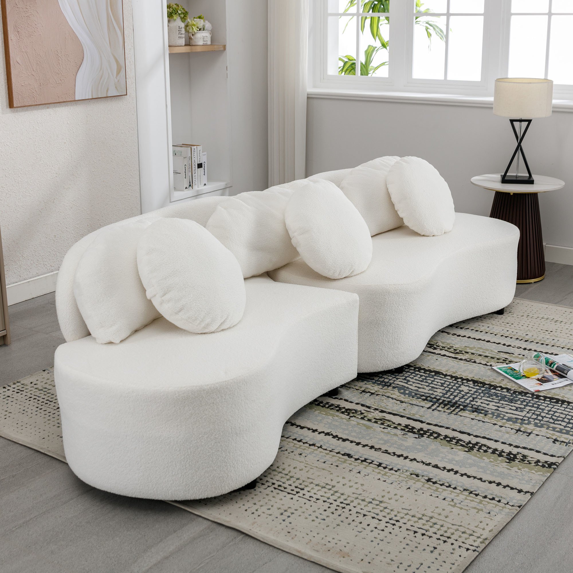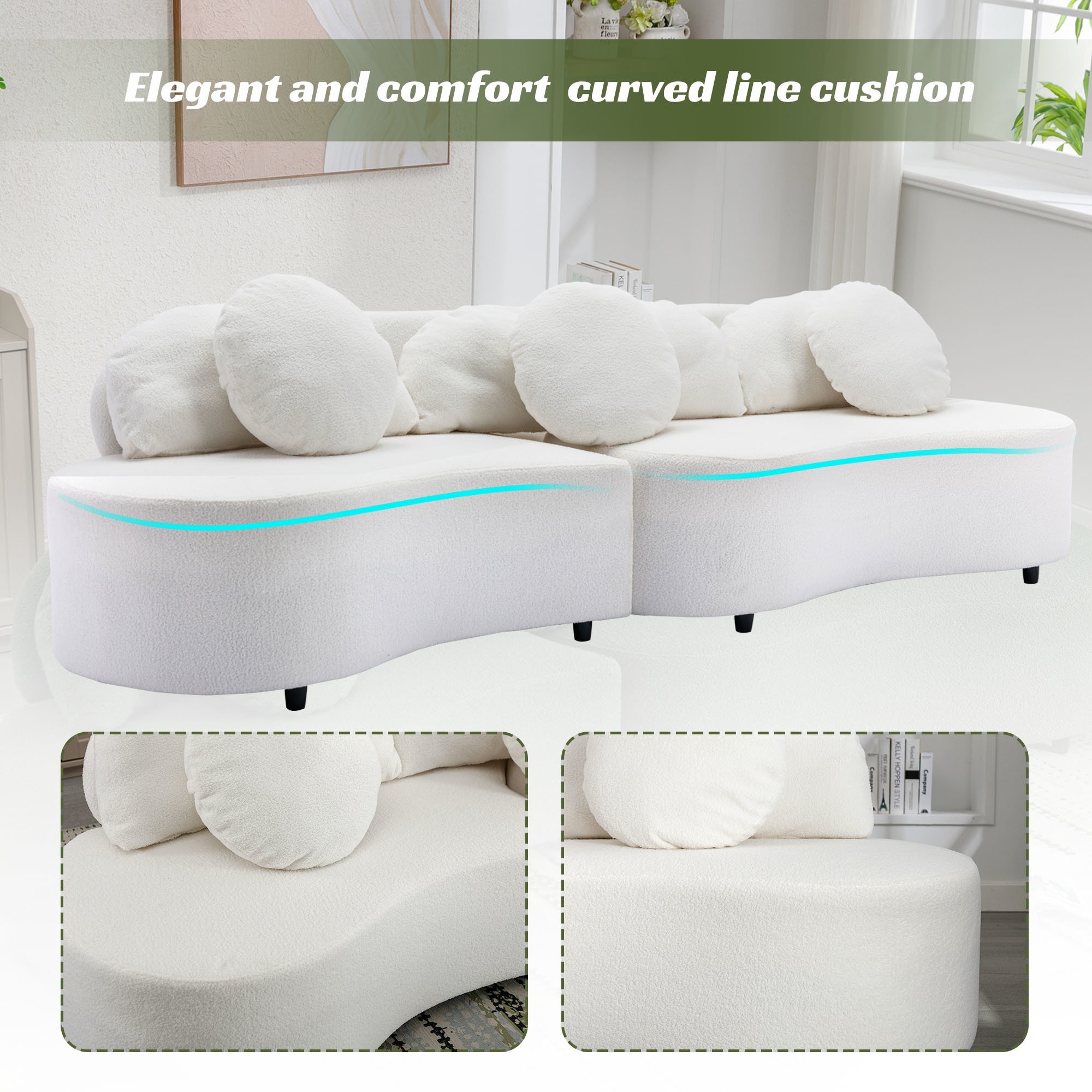 3.Luxurious Enjoyment - The thickened seat cushions for the couch is firm and comfortable, there are high-density foam to make sofa cushions more fluffy, which will provide you with much support. 3 long pillows and 3 round pillows support the waist well. The enveloping shape of our sofa perfectly matches the sophisticated yet minimalist interiors.