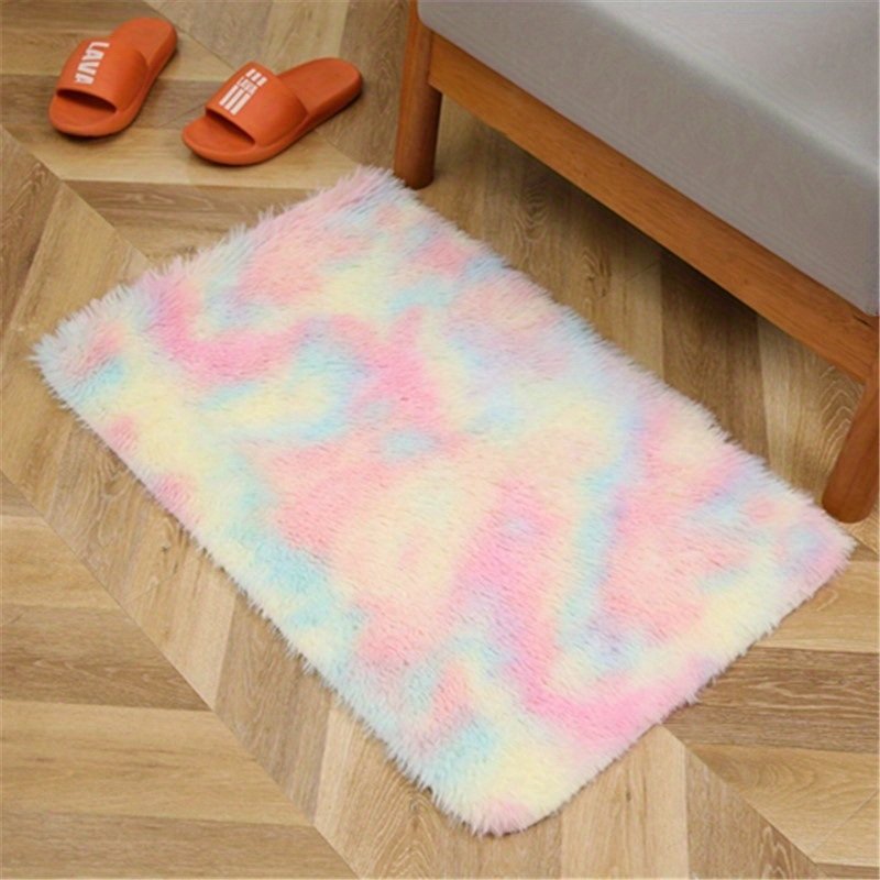 1pc, Tie-Dyed Plush Shag Furry Area Rug for Bedroom, Living Room, Nursery, and Kids Room - Ultra Soft and Fluffy, Washable, Non-Shedding