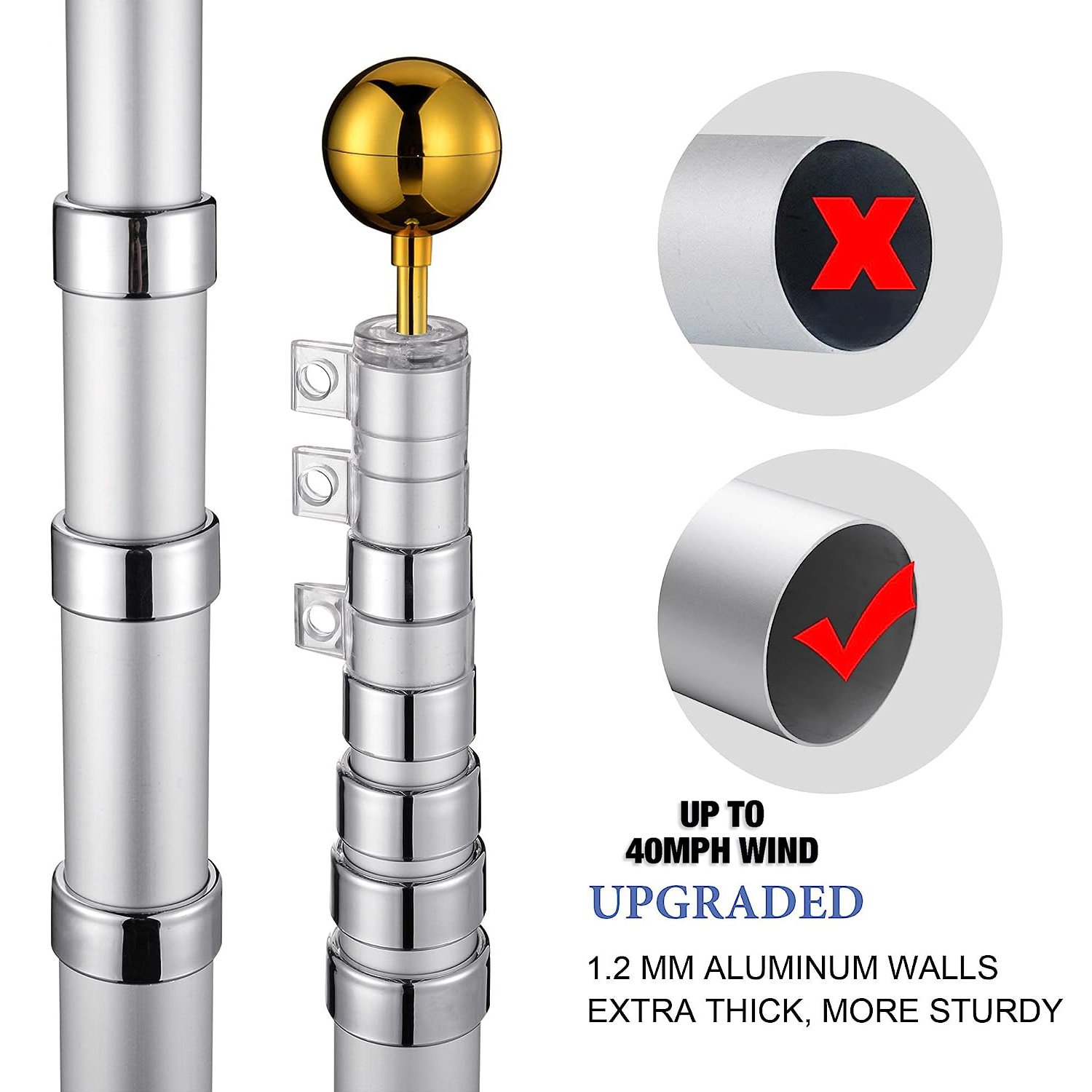 1.Lightweight Aluminum Construction: Our flag pole is crafted from durable yet lightweight aluminum, making it easy to transport, set up, and store, without sacrificing strength.