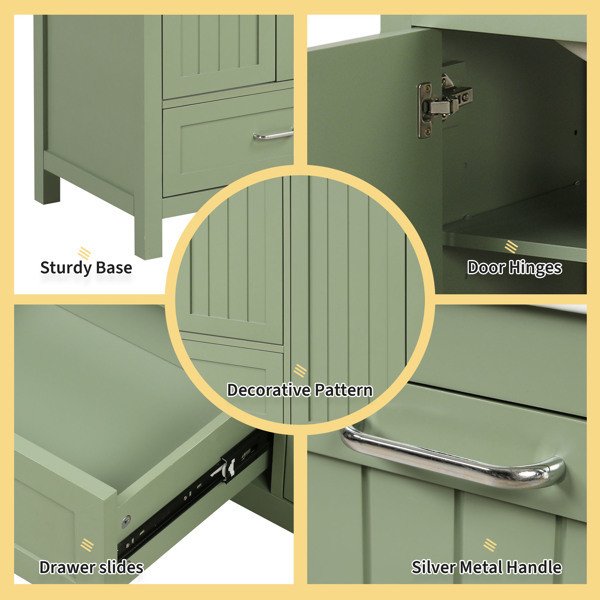 Stylish Bathroom Vanity: This bathroom vanity is suitable for bathroom in any decoration style. Freestanding green vanity cabinet with silver knobs complies with your bathroom facilities. The groove design on the door increases the artistry and aesthetics of home. If you're looking for a simple but stylish bathroom sink vanity, our product will be a great choice to upgrade your bathroom.