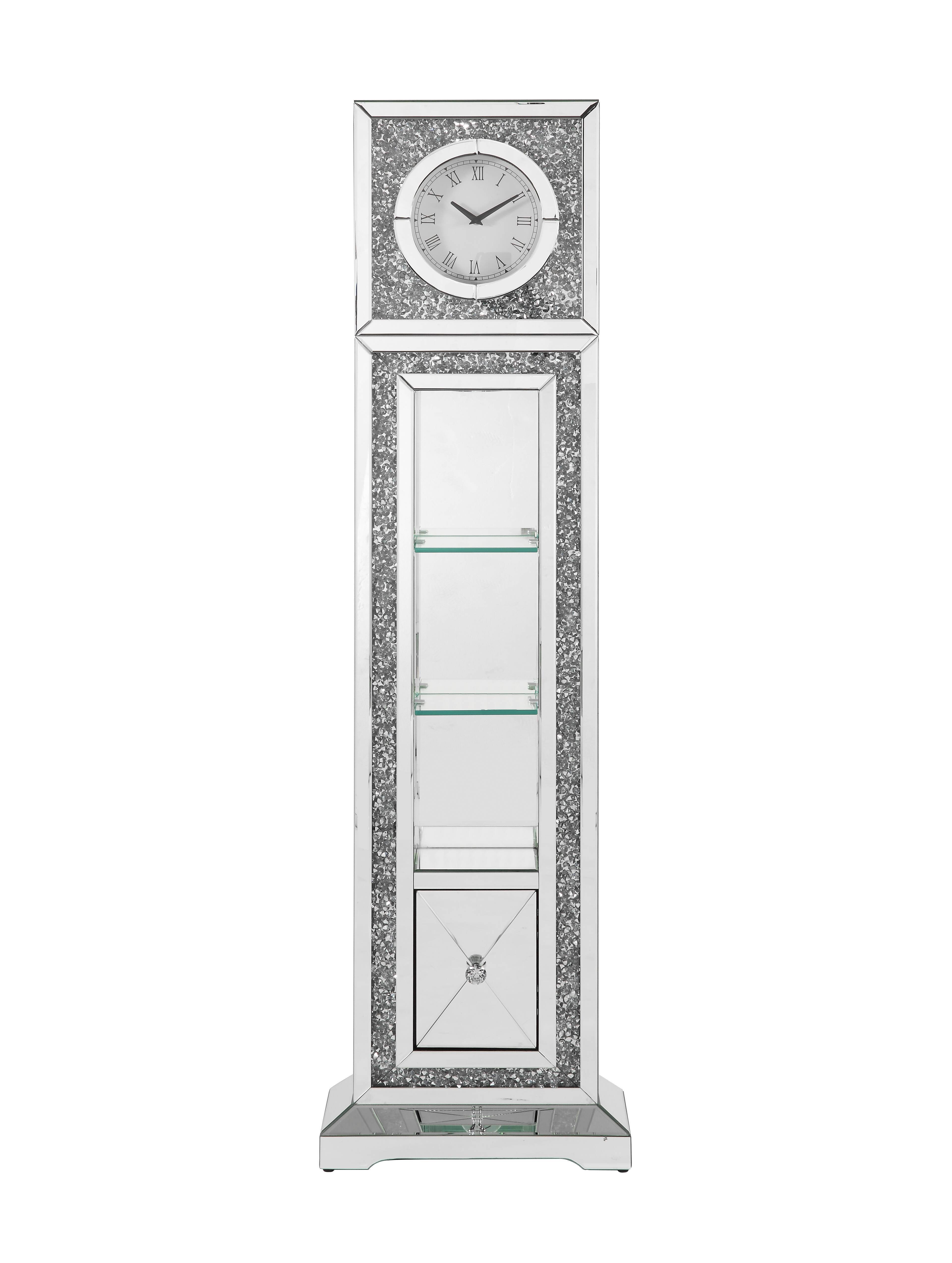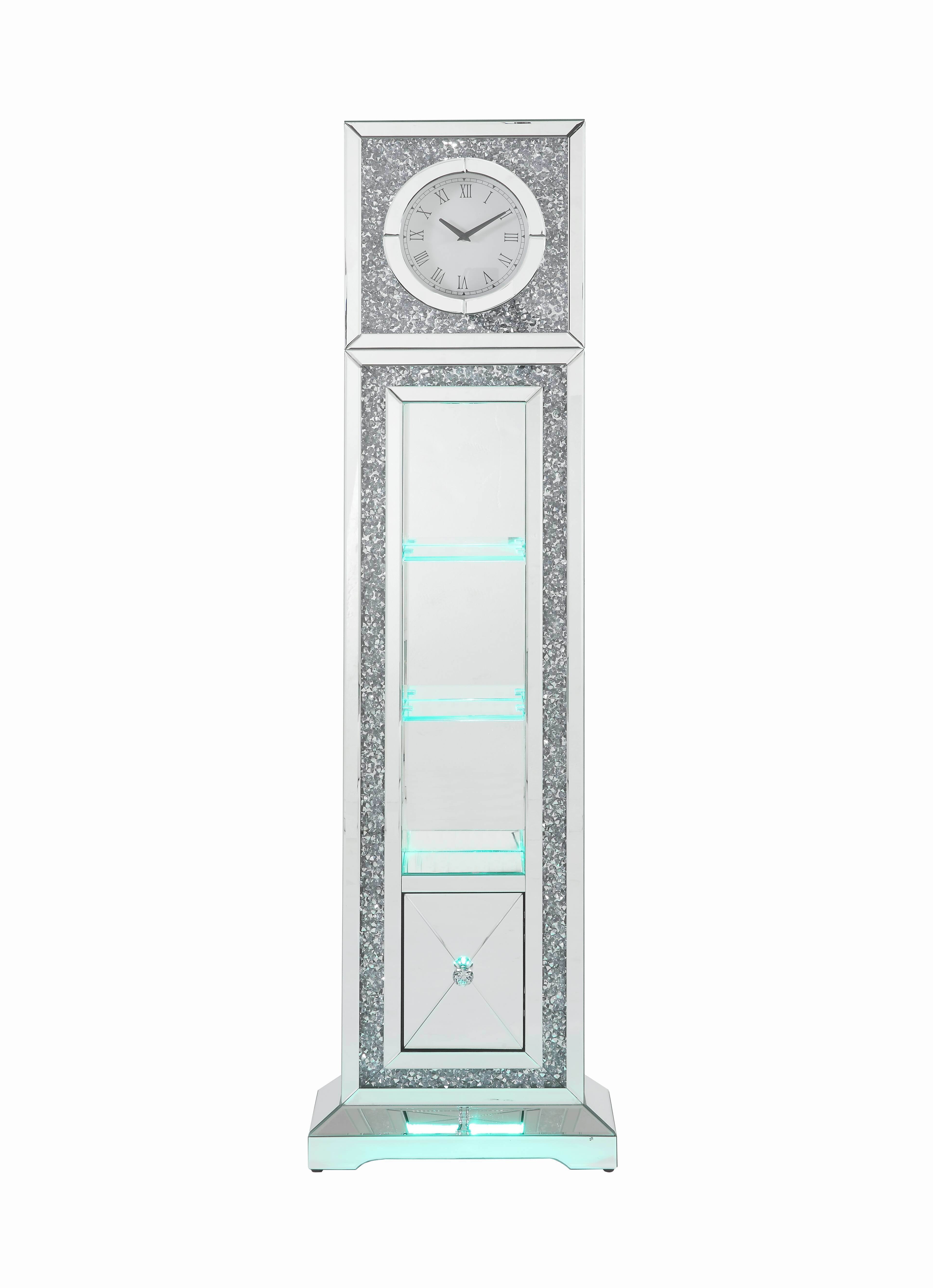 ACME Noralie GRANDFATHER CLOCK W/LED Mirrored & Faux Diamonds AC00354