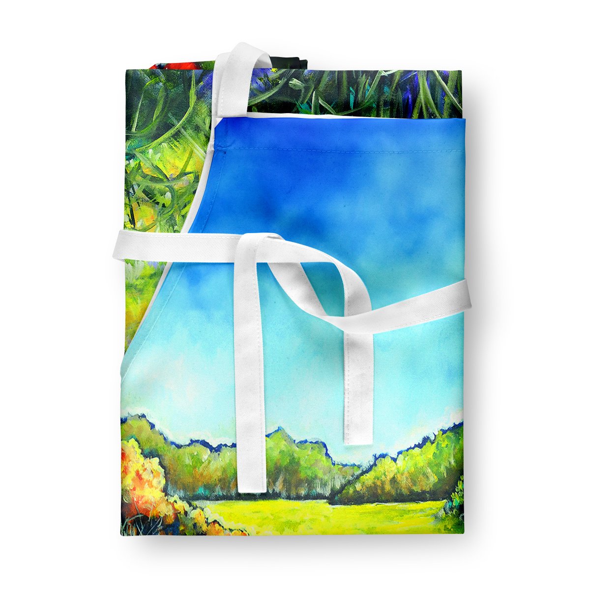 Elevate your cooking, baking, and grilling experiences with our versatile Kitchen or BBQ Apron. This Bib Style apron isn't just limited to culinary activities - it also serves as an excellent baking apron, artist apron, server apron, gardening apron, or even a dog grooming apron. The apron showcases vibrant full-color artwork contributed by one of our talented artists, bringing a dash of style to your daily tasks. With dimensions of approximately 27"W x 30"H, it provides ample coverage to protect your clothing from spills and splashes. Our apron is meticulously crafted from 100% Ultra Spun Polyester, known for its durability and lightweight nature. The apron comes with white tie straps, ensuring a comfortable and adjustable fit for all. It's a perfect choice for kitchen apron enthusiasts, whether you are a woman or a man. Designed for easy maintenance, this apron is fully machine washable. The quick-drying polyester material actively reduces staining, keeping your apron looking fresh and new for longer. Our beautifully designed apron isn't just a functional kitchen accessory - it's a fashion statement in the culinary world!
