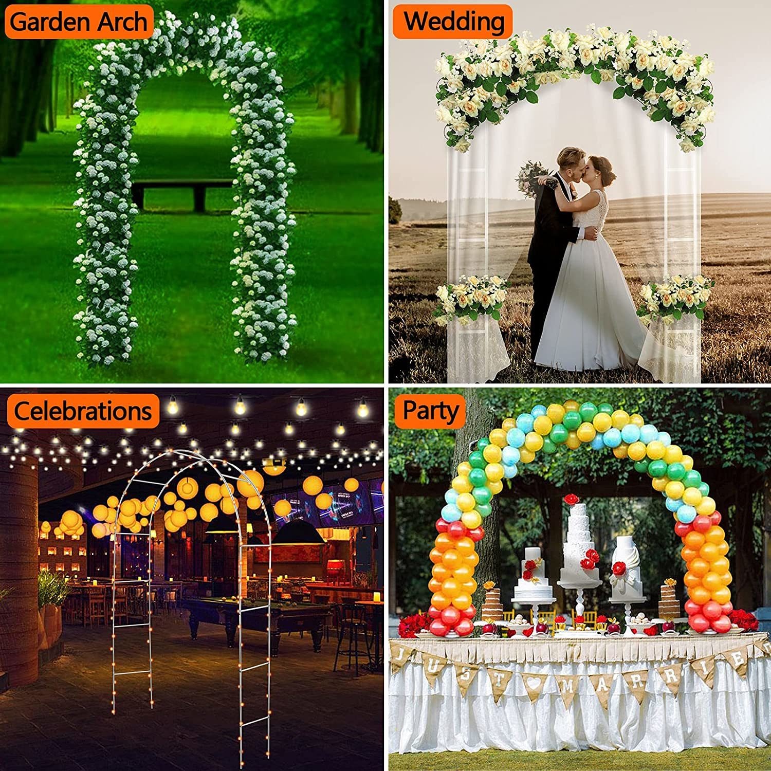 5.Attractive Arch: Our garden arch can be decorated with vibrant flowers, tulle, balloons, foliage, lights or anything else, it is an graceful entry to your garden even without climbing plants. (NOTE: decoration is not included)