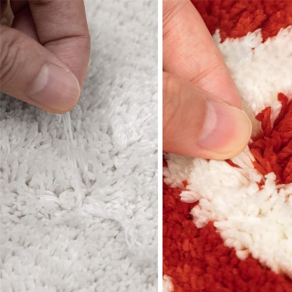 1.High and Soft Quality: The Christmas bathroom rugs are made of high quality flocked material for long term use. Merry Christmas Bath Rug has a non-slip backing, which is durable to keep the rug in place and protect the elderly and kids from falling or slipping in the bathroom.