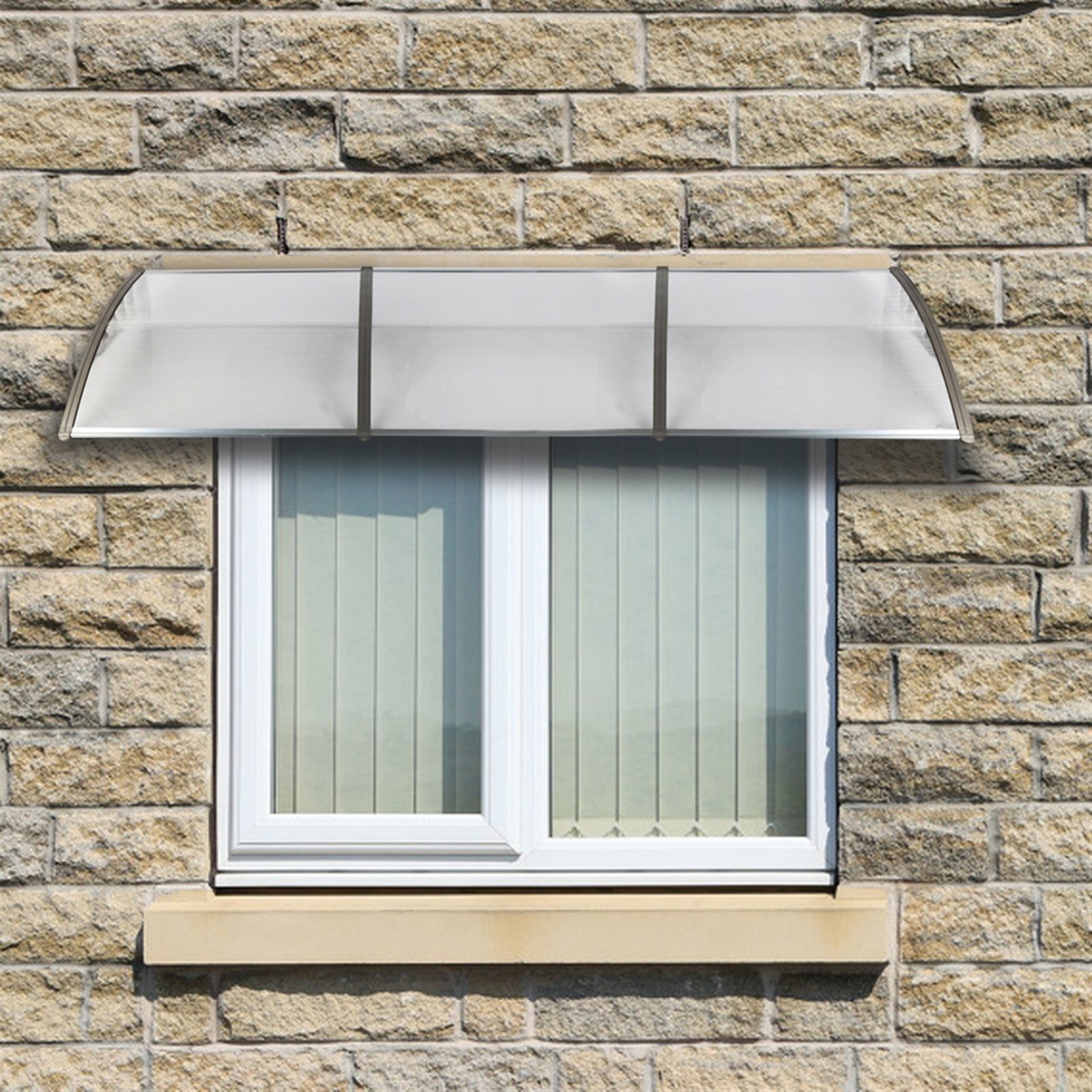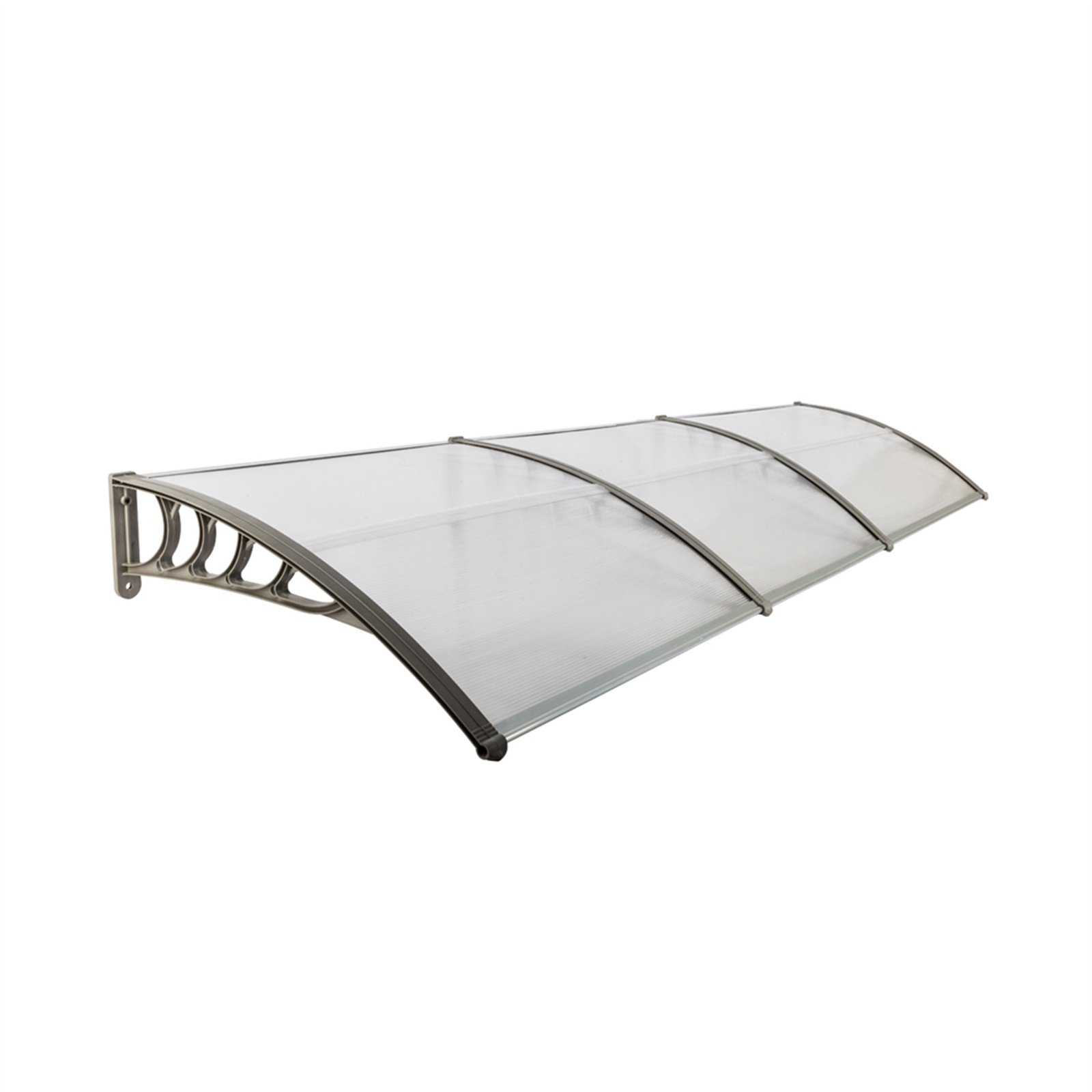 Build a mini shelter for resisting rain or scorching sun at the gate or window! You may feel it wonderful by using our 300 x 100 Household Application Door & Window Rain Cover Eaves Canopy! This is a superb design integrating high-class ABS and polycarbonate materials; durable and wear-resistant to use. Aluminum bracket could strongly sustain this canopy. It bulges to shape a small shield. Quite easy to install and remove! It also acts a decoration for your house! Don't miss such a good chance!