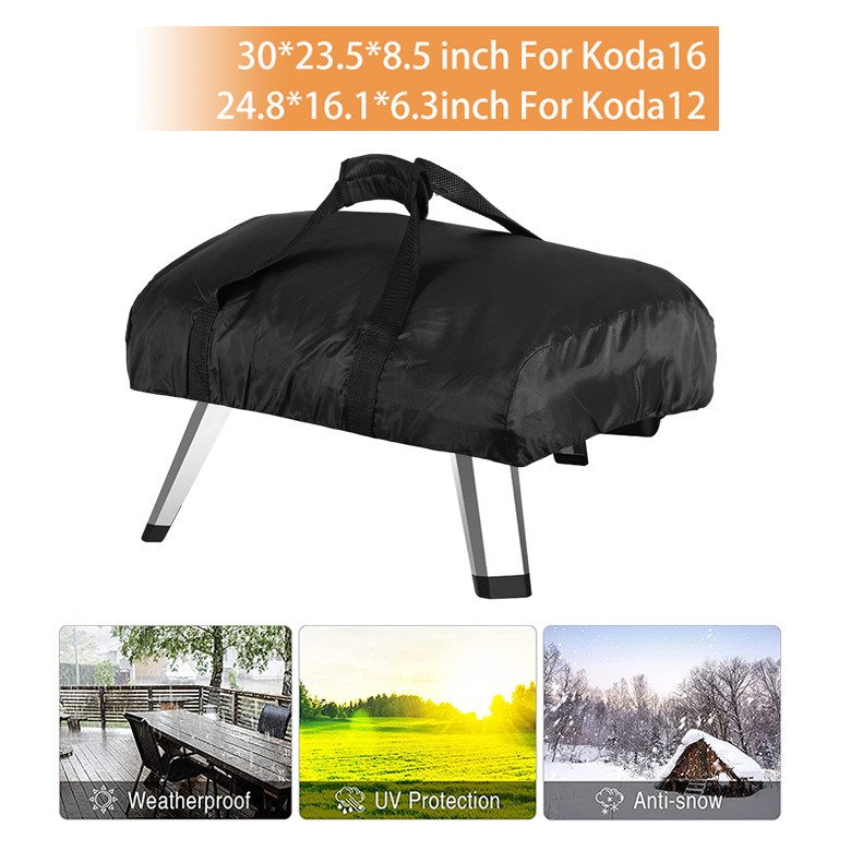 Protective cover suitable for KODA12 KODA16 grill Bagging: cloth bag (bundle pocket) +opp bag+size specification label Material: 420D waterproof silver-coated Oxford cloth Two sizes are available: Kodak 12 _ 24.8 * 16.1 * 6.3 inch (63 * 41 * 16 cm). Koda 16_30*23.5*8.5 inch (77*60*22 cm) Quality assurance, waterproof, sunscreen and dustproof.