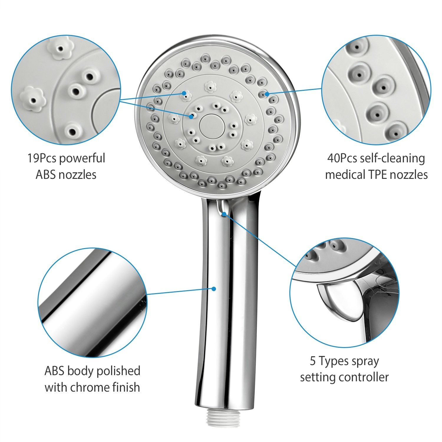 **LONG LASTING CONSTRUCTION*:Made from high-grade ABS plastic materials and adopting premium chrome finish,our shower head is abrasion-resistant,anti-corrosion,anti-crack and safe to your family’s health.