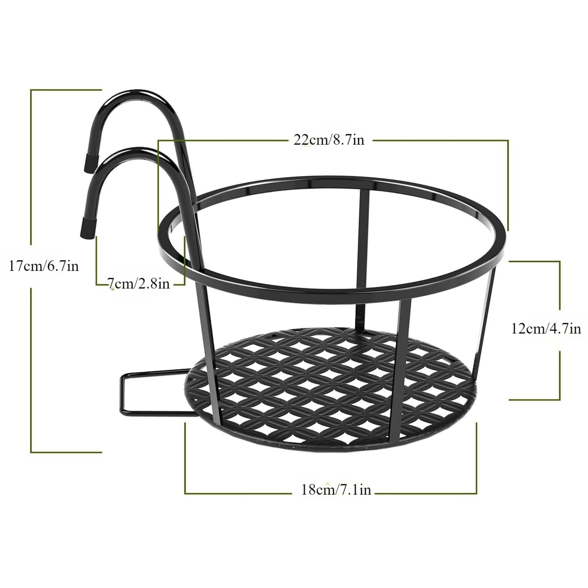 HighlightsPremium wrought iron materials with electrostatic antirust spray paint craftsmanship, sturdy enough and not easy to get rustEasy to hang on balcony fence,our flower pot holder is a masterpiece of art for home and garden decor organizer4Pcs round flower pot holders are optimal for potted plants, air plants, succulents and more other micro landscape or wedding decoration.This railing planter makes full use of vertical space and adds more vigorous to your spaceSize measuring before purchasingSpecificationShipping Limitations:UnlimitedDimensions:11.02 in * 6.92 in * 6.3 inWeight:0.58 lbAvailable Ship to:United StatesDetails*Features*: