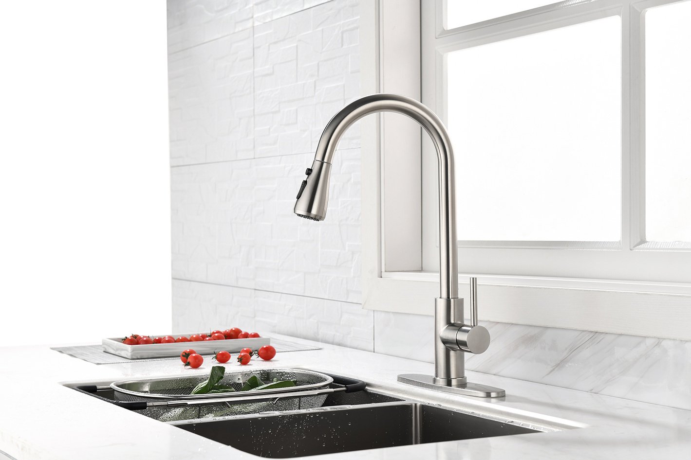 3.Easy to Install---Pull down hose and water Line hose altogether preinstalled in kitchen faucet to save much time under the sink