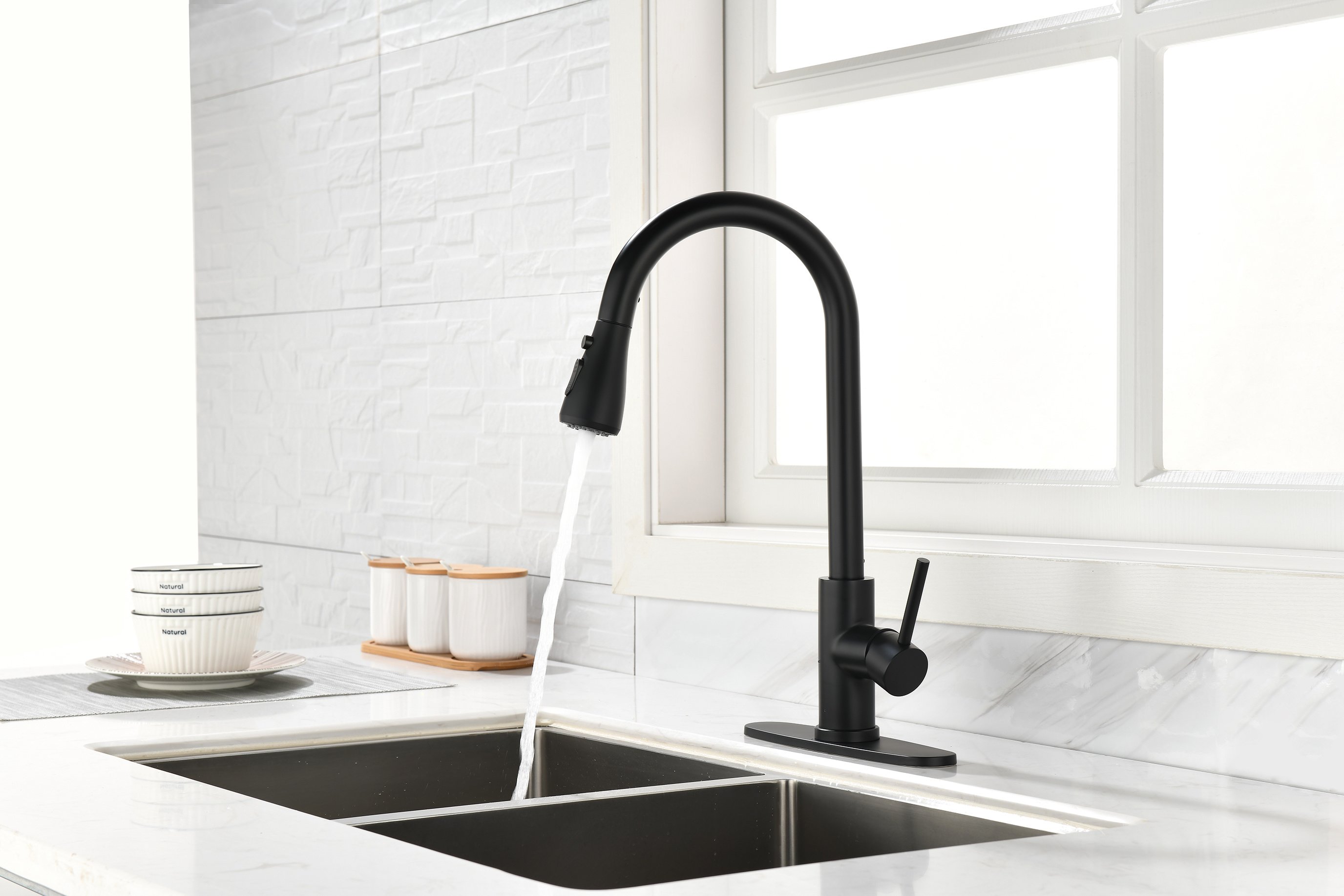 Easy to Install---Pull down hose and water Line hose altogether preinstalled in kitchen faucet to save much time under the sink,no require plumber,finish DIY installation less than 30 minutes.