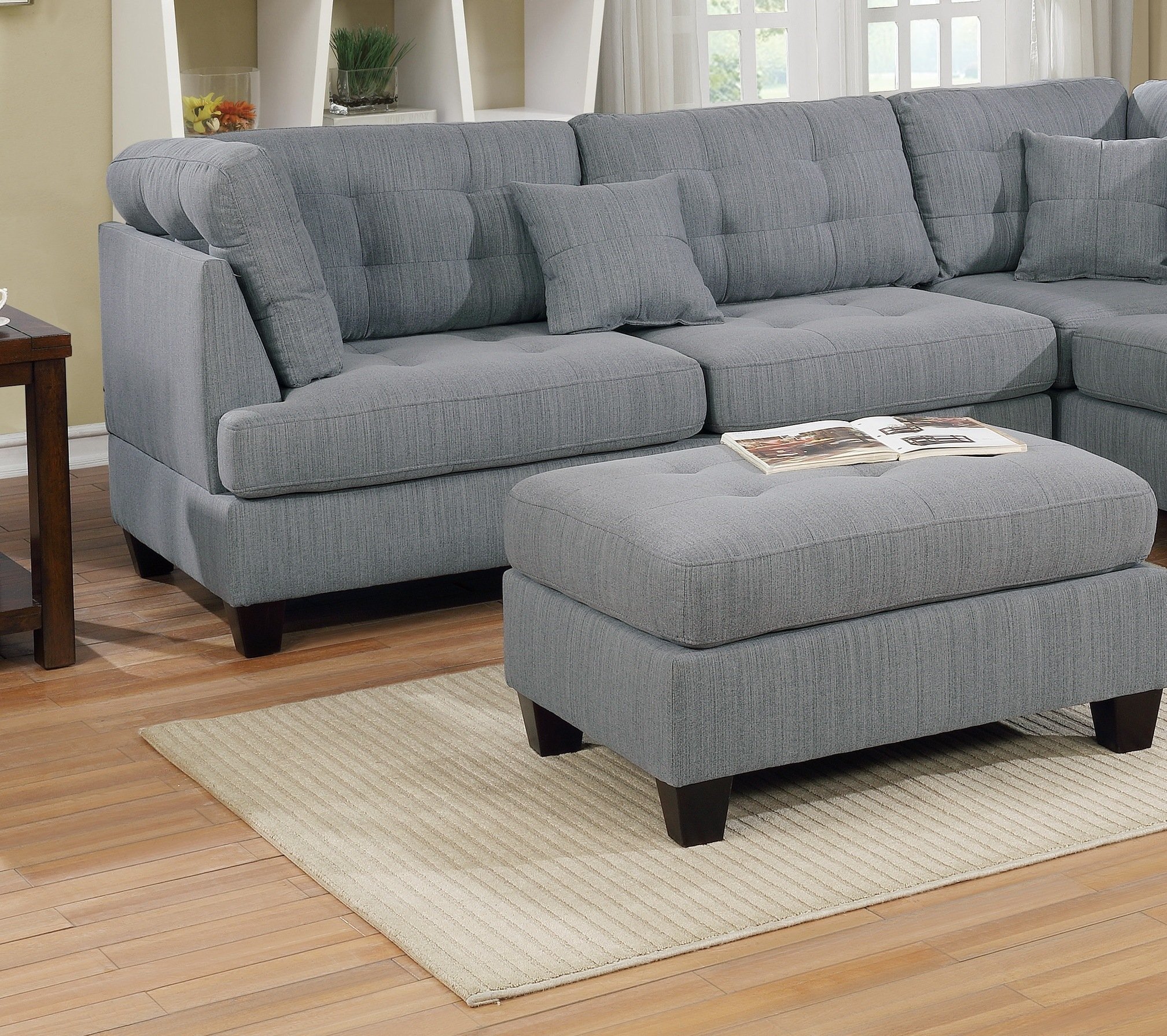 Modern 3pc Sectional Sofa Set Reversible Chaise Sofa Ottoman Gray Linen Like Fabric Living Room Furniture Couch Modern 3pc Sectional Sofa Set Reversible Chaise Sofa Ottoman Gray Linen Like Fabric Living Room Furniture Couch Modern 3pc Sectional Sofa Set Reversible Chaise Sofa Ottoman Gray Linen Like Fabric Living Room Furniture Couch