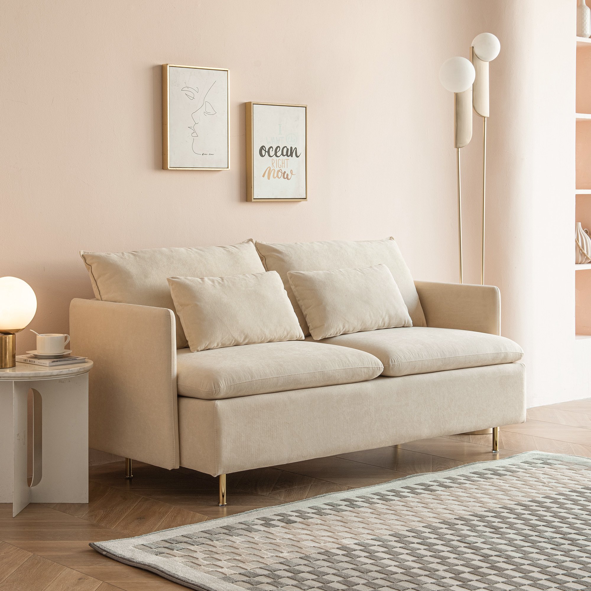 Home > Modern Upholstered Loveseat Sofa; Beige Cotton Linen-63.8''
