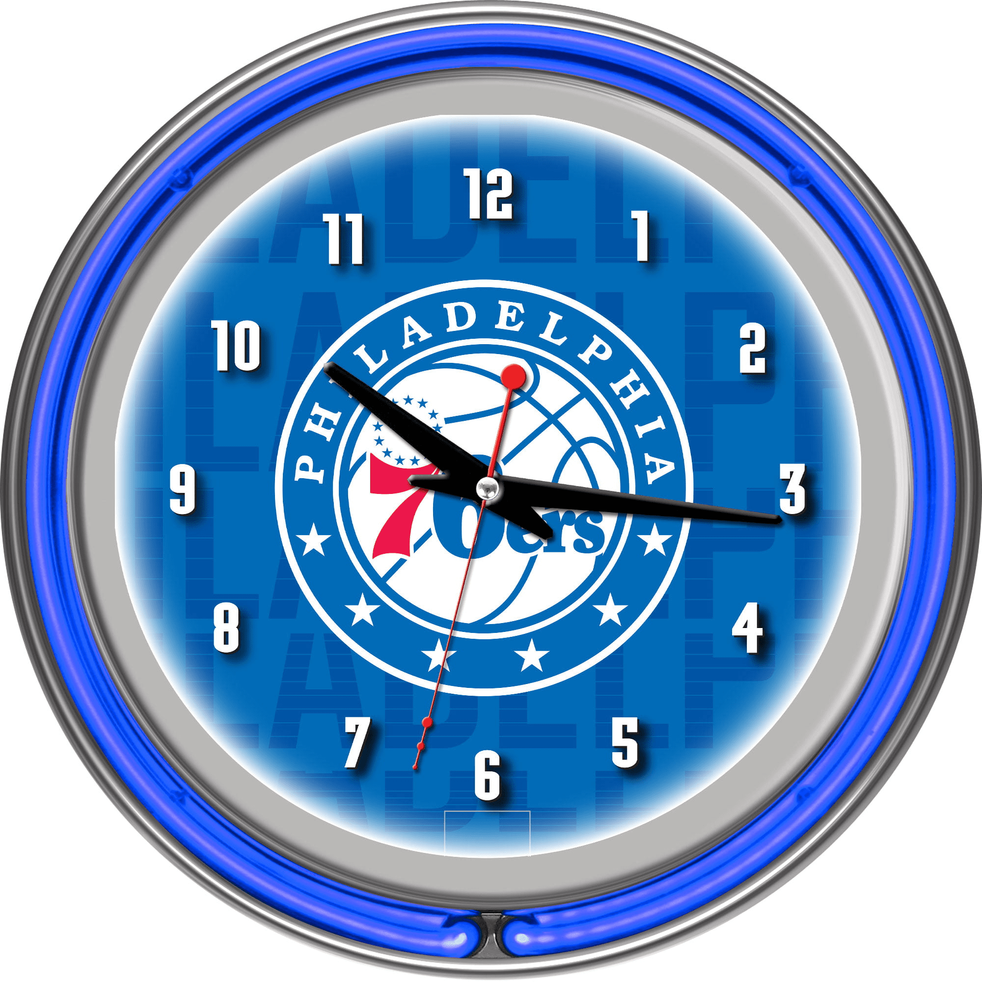 This officially licensed neon wall clock is the perfect addition to any game room, garage or man cave. This impressive clock has two neon rings; one is an accent colored neon ring on the exterior and the other is a brilliant white neon ring on the interior of the clock to light up your favorite logo. Other highlights include chrome finished resin housing and a high-grade glass clock face cover. The battery-operated quartz clock mechanism will keep it ticking for a long time, while the neon runs off the included ac adapter. The neon is controlled by the pull chain and the back of the clock includes a wall hanging mount and has two modes ? Solid state and blinking. The 3? Depth of this clock combined with the radiant shimmer of the neon reflecting off the chrome housing is sure to make this clock pop on any wall!