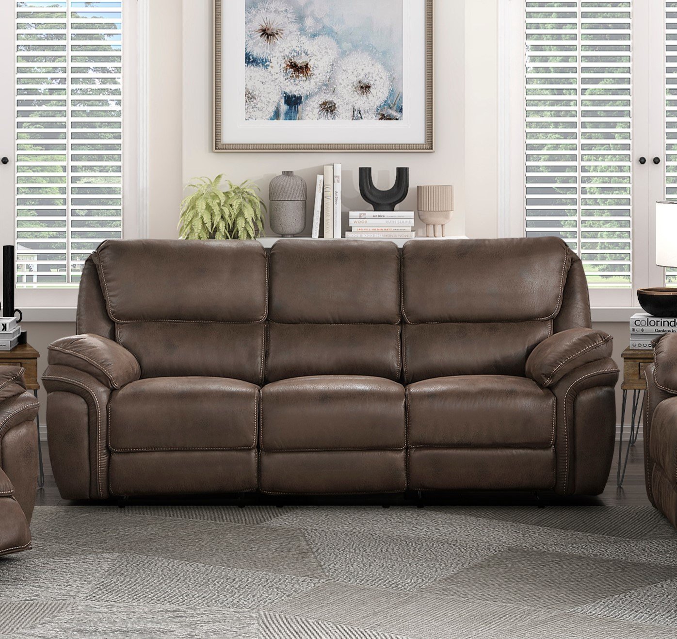 The plush modern design of the Proctor Collection provides a platform for relaxation whether watching a big game with your friends or settling in for a movie with the family. The contoured profile of the sofa is covered in brown polished microfiber, providing smooth touch to your seated experience. With a pull of the side mounted tab the reclining mechanism is engaged easing the dual recliners of the sofa into the prone position.PRODUCT DIMENSIONS: Overall Dimension: 90" x 39" x 40.5"HSeat Width: 66"Seat Depth: 24"Seat Height: 20"Arm height: 27"Fully reclined length: 64.5"Fully reclined height: 32"Doorway width: 27"Required back clearance to recline: 2.5"Listing Includes: One Sofa (Dual Reclining) Only.Loveseat & Chair: Not included.Simple Assembly Require.