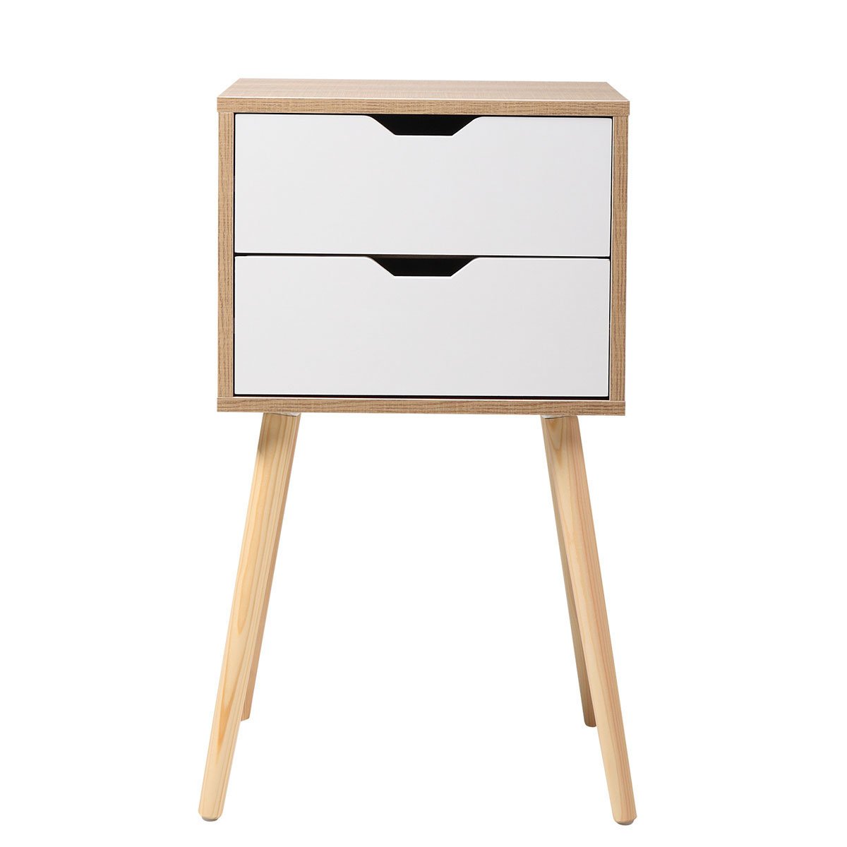 Set of 2 Wooden Modern Nightstand with 2 Drawers and 4 Solid Splayed Legs, Living Room Bedroom Furniture