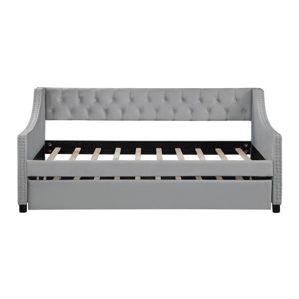 Twin Size Upholstered Daybed with Trundle,Sturdy Wood Bedframe w/ Bedframe Tufted Button & Copper Nail on Arms Design,Perfect for Bedroom Twin Size Upholstered Daybed with Trundle,Sturdy Wood Bedframe w/ Bedframe Tufted Button & Copper Nail on Arms Design,Perfect for Bedroom Twin Size Upholstered Daybed with Trundle,Sturdy Wood Bedframe w/ Bedframe Tufted Button & Copper Nail on Arms Design,Perfect for Bedroom