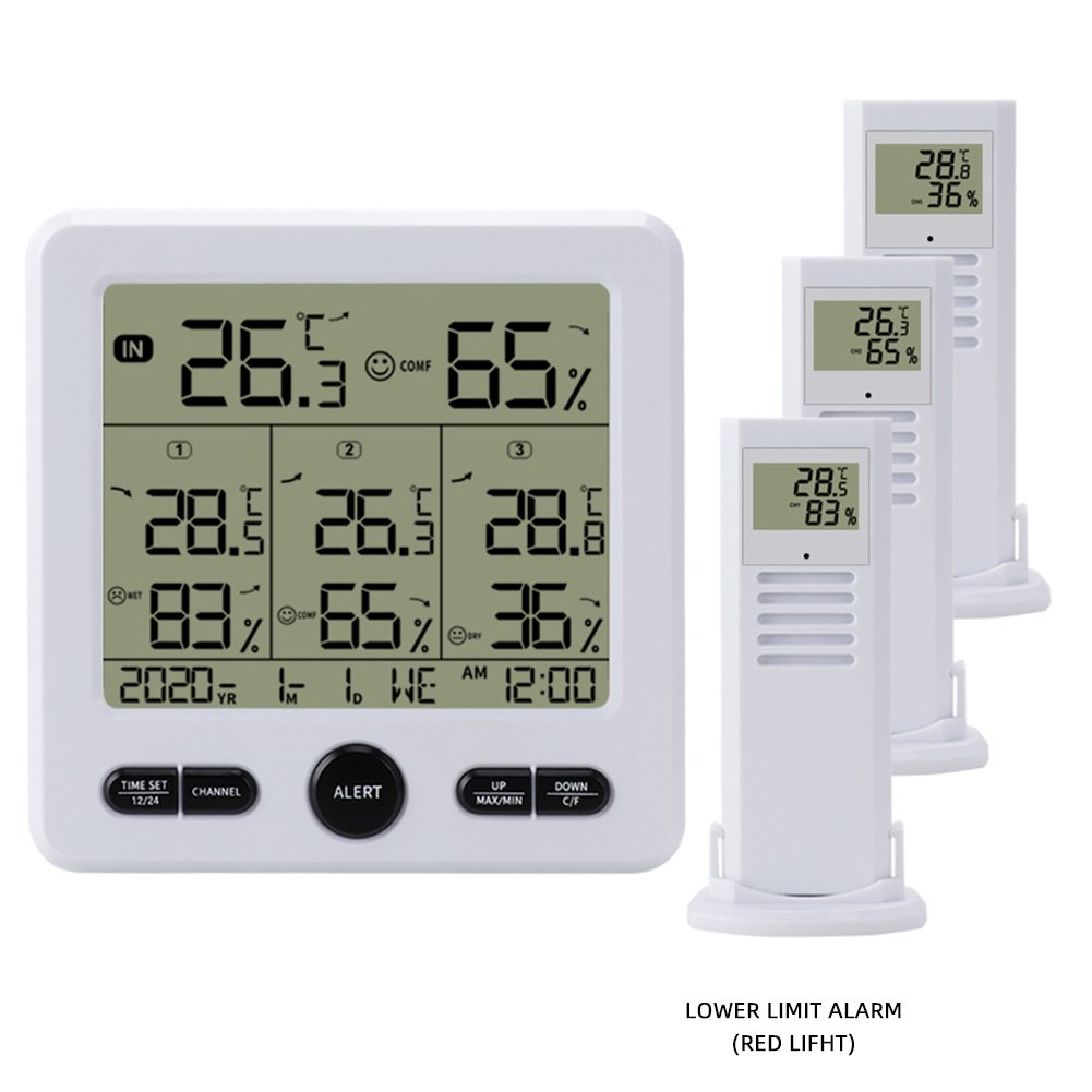 1. It can display three channels and indoor temperature and humidity at the same time, and display the comfort of the third level indoor environment